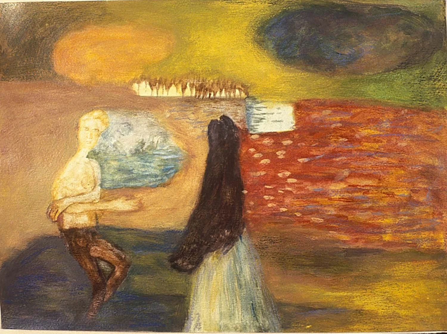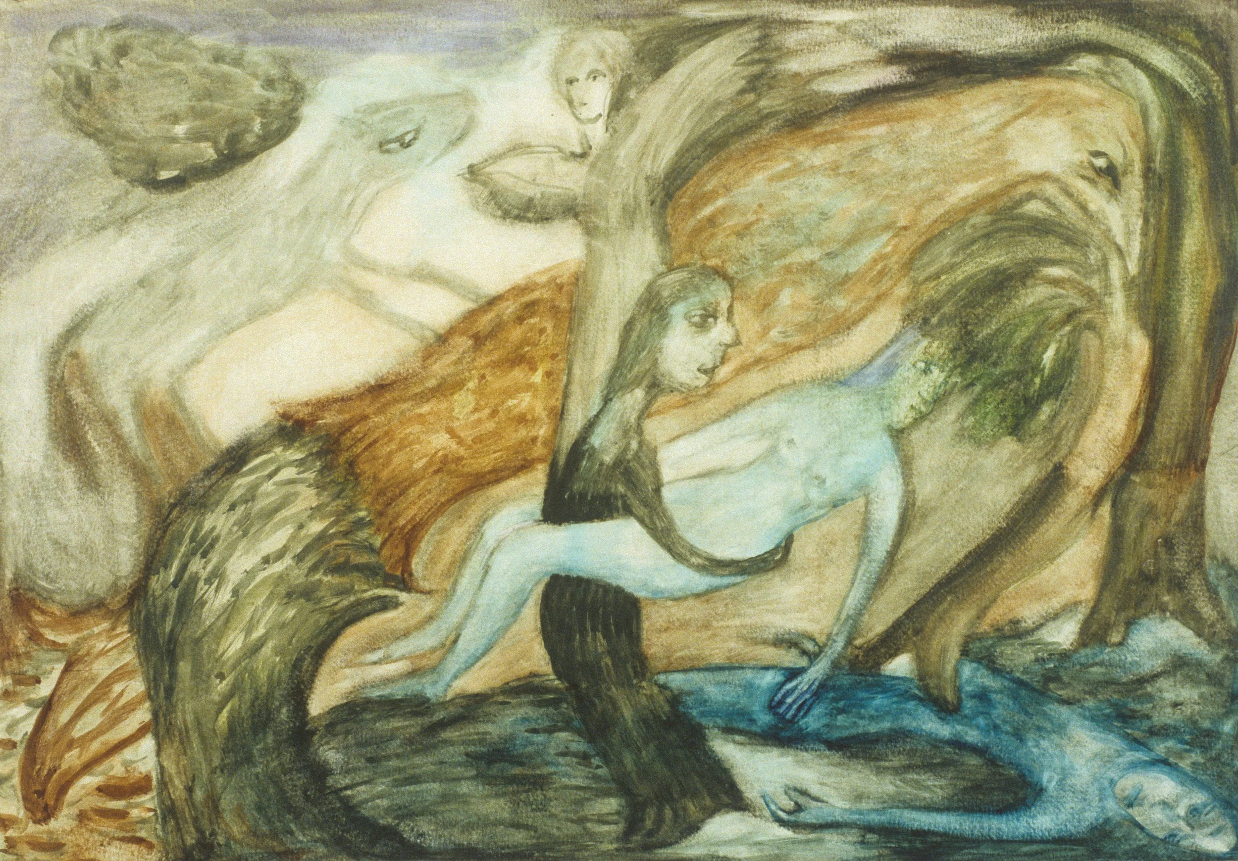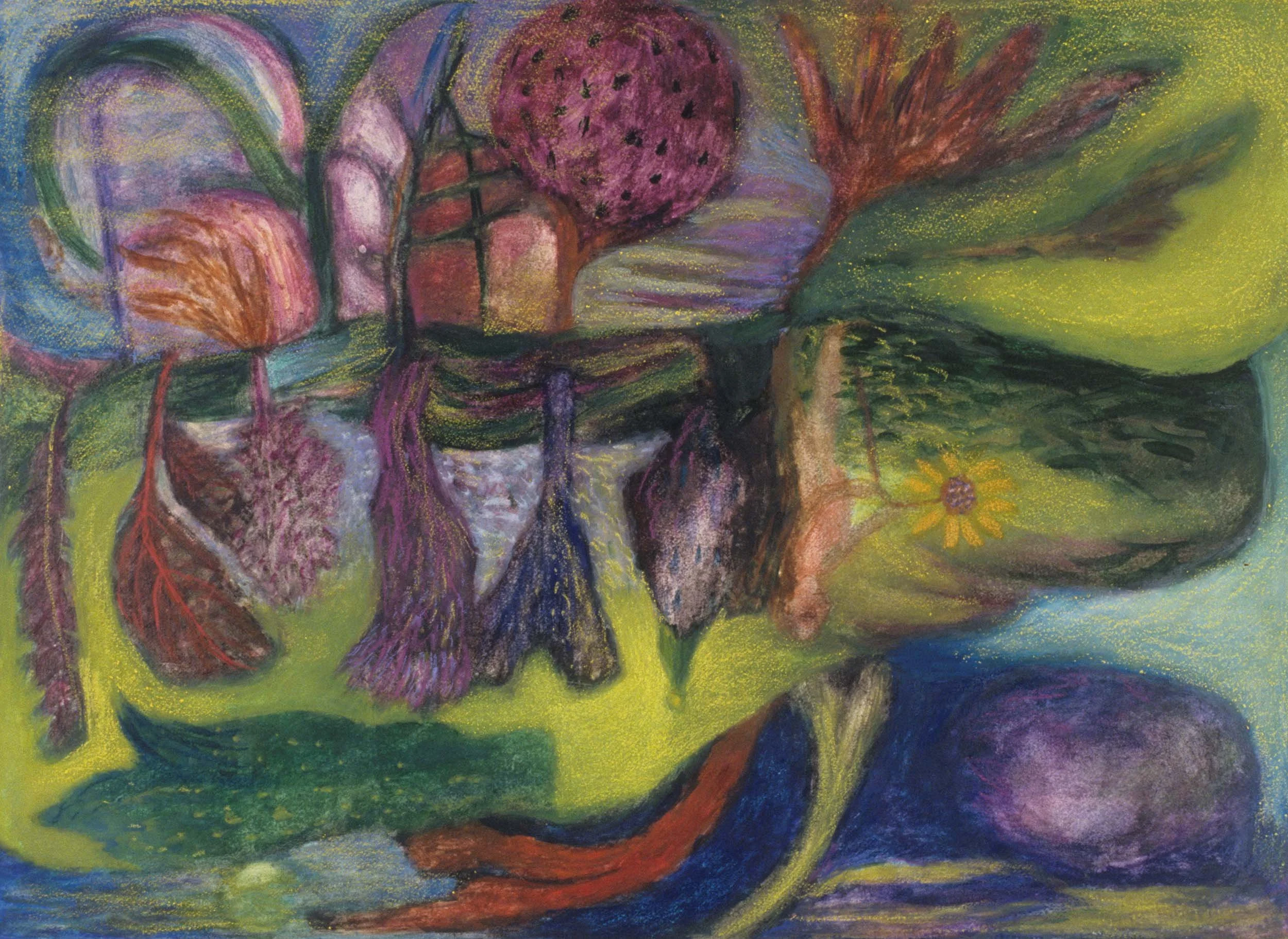 In 1988 I left India for fellowships in County Durham, UK. The watercolors, drawings and etchings of this period reflect both the joy and isolation of living in the countryside, and the idyllic beauty of northeast England resonated in my work for years to come. The figuration and emotion in the work came into being through a process of unmeditated mark-making or layering of thin watercolor washes.