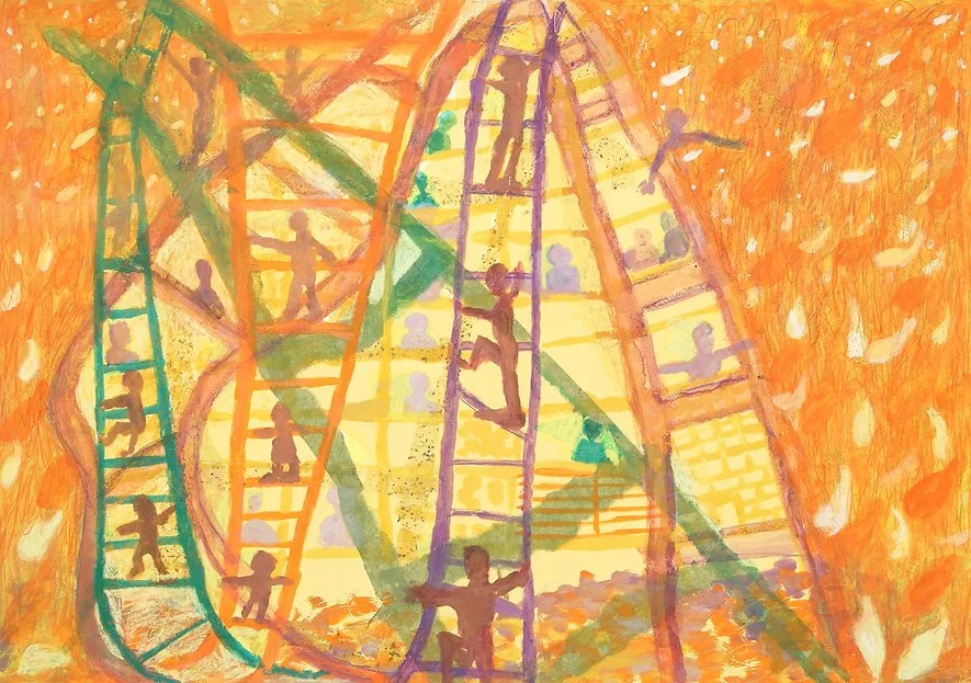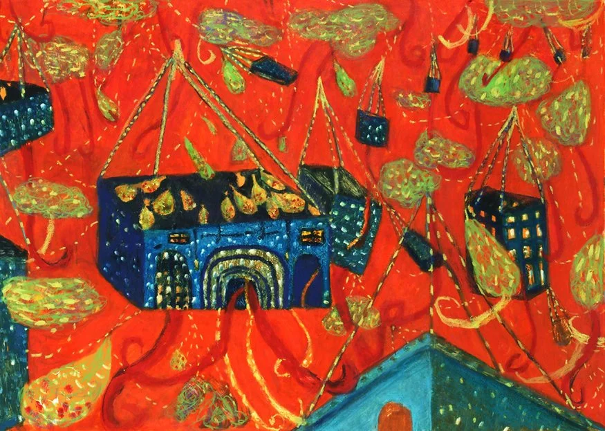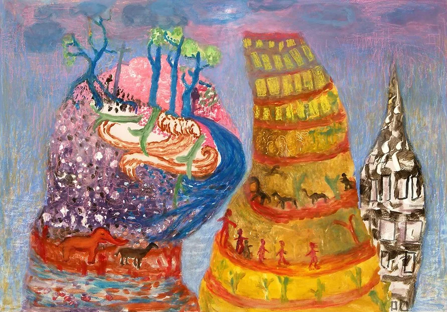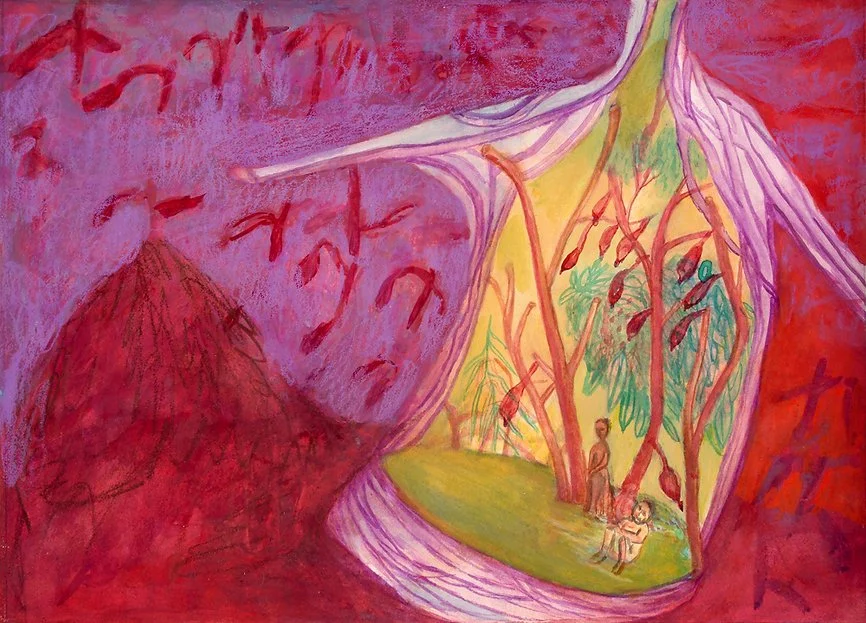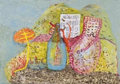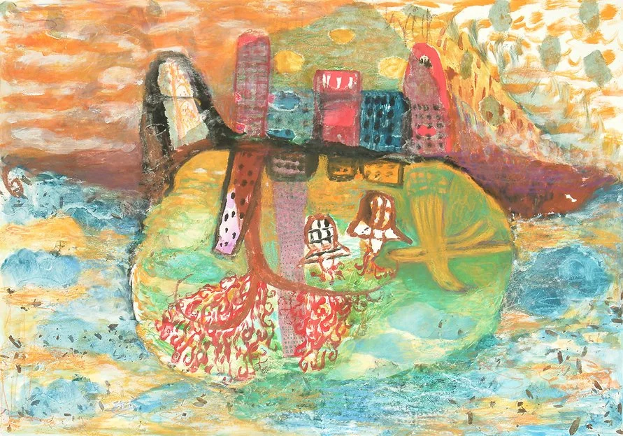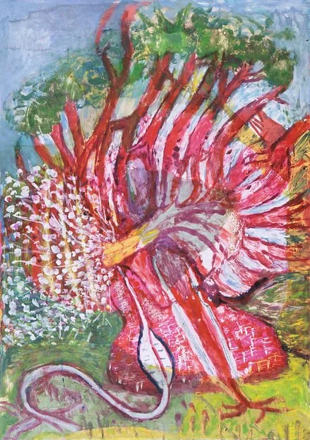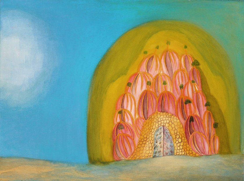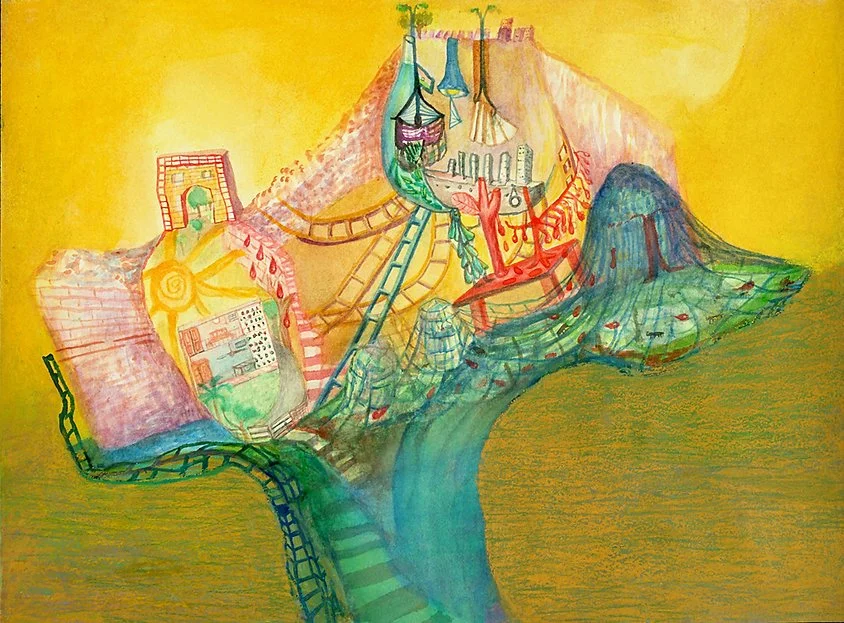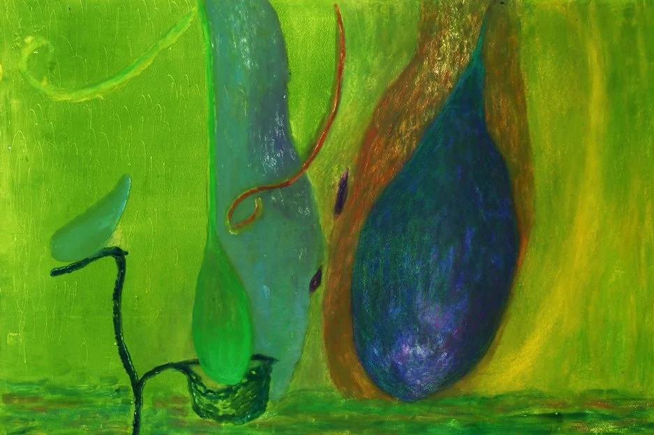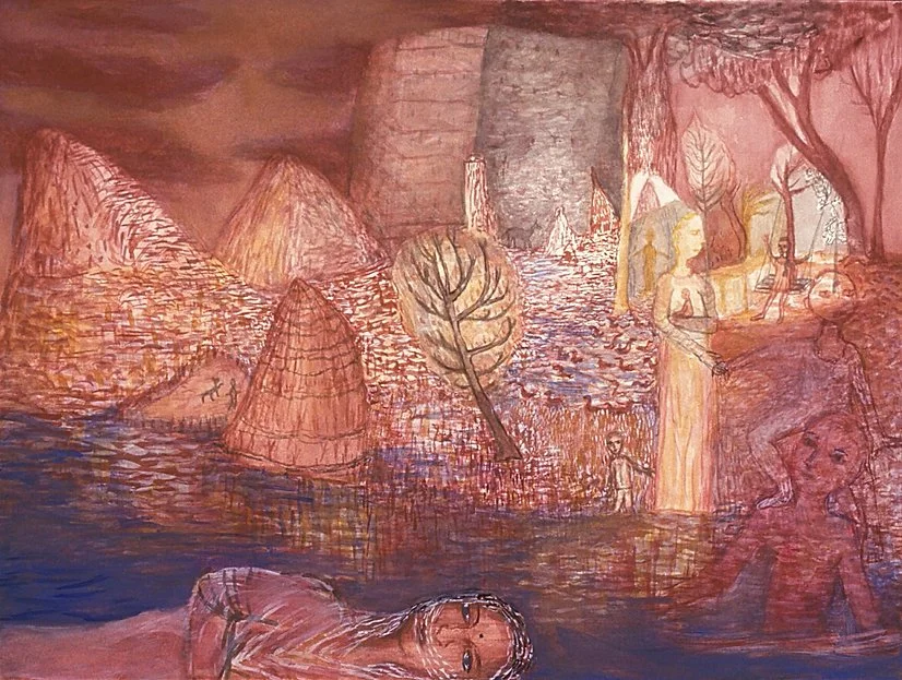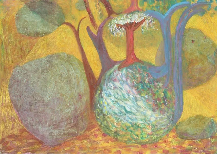 In 2007, I returned to small-scale watercolors with imagery inspired by recent oil-based paintings, but soon the pictures developed a subtler, more detailed and whimsical imagery, of make belief people and animals set in an enchanted or menacing womb-like landscape.