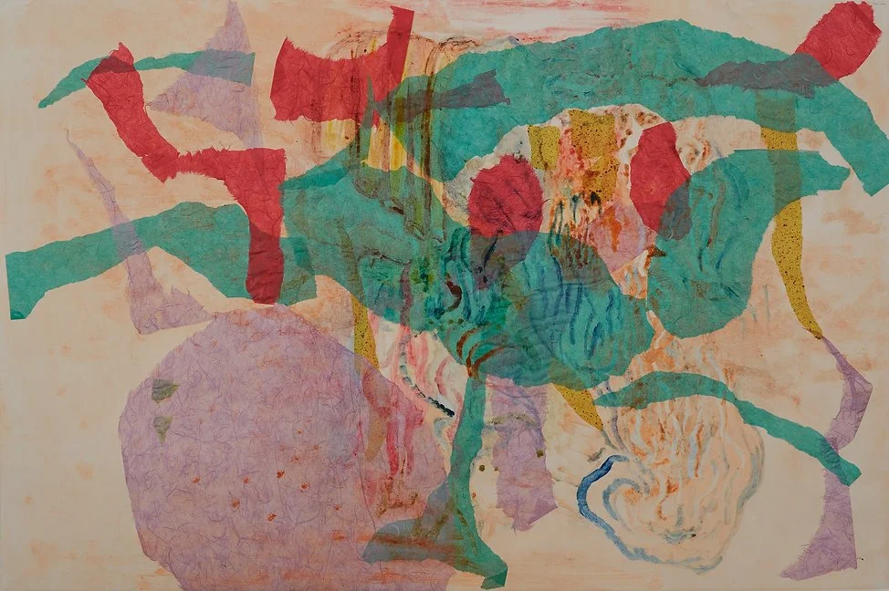 'Open' Chine' Cole, watercolor on Monoprint. 40"x 30". 2018