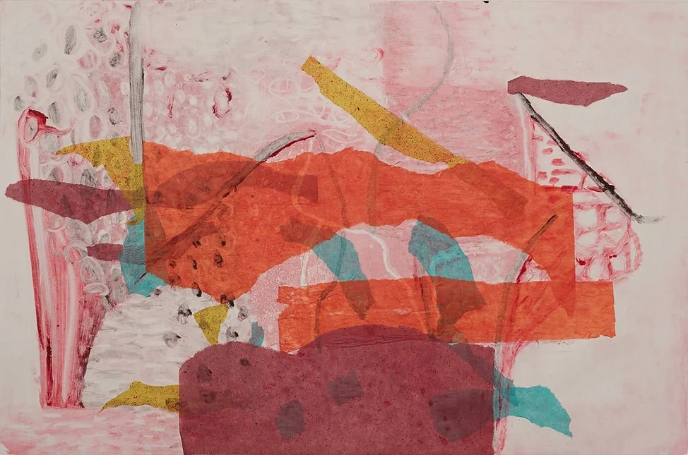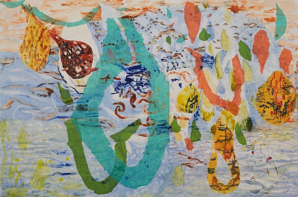 'Drift'. Chine' Cole, watercolor on Monoprint. 30" X 40". 2017